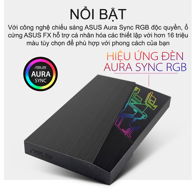 Ổ CỨNG DI ĐỘNG ASUS FX 1Tb Aura Sync RGB Gen1Tích hợp LED RGB Aura Sync, đồng bộ hóa với các thành phần và thiết bị ngoại vi hỗ trợ Aura .