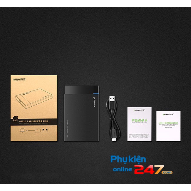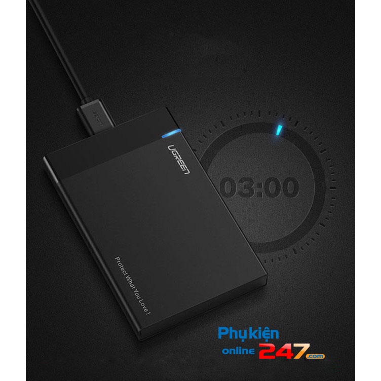 HDD box SATA 2.5 inches USB 3.0 UGREENHDD box SATA 2.5 inches USB 3.0 UGREEN 30847 sử dụng để bảo vệ và kết nối ổ cứng SSD, HDD 2.5 inch với PC, laptop để lưu trữ và truyền tải dữ liệu