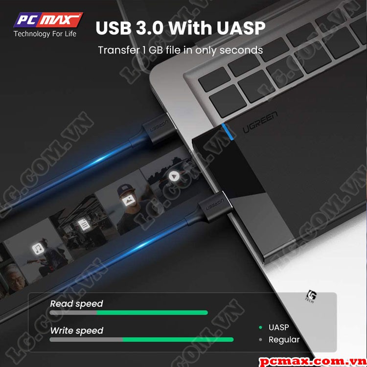 HDD Box 2,5 inch chính hãng Ugreen 30848 30847 50743Ugreen 30848 dùng để bảo vệ ổ cứng dữ liệu của bạn cũng như để kết nối với máy tính giúp người dùng đọc, ghi dữ liệu một cách nhanh chóng bằng việc sử dụng cổng kết nối USB 3.0