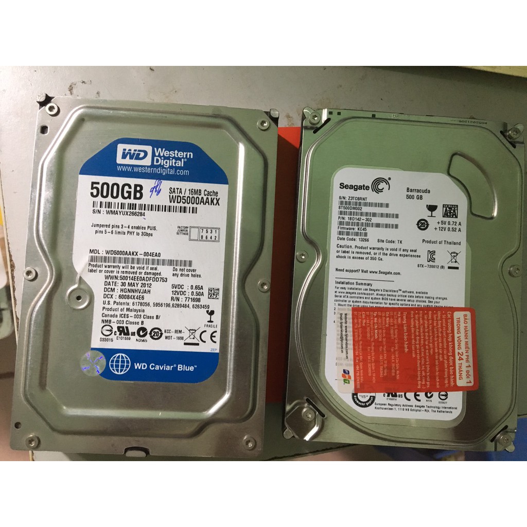 HDD ổ cứng PC 500G các loại - Tặng kèm cáp Sata, ổ bóc máy chuẩn hàng cũ ko phải hàng Fake làm lại reset giờ chạy về 0, ae mua lưu ý nhé, hàng chuẩn bao giờ cũng bền hơn hàng làm lại mới dùng phần mềm can thiệp số giờ chạy và xóa bad, dùng 1 time là lỗi.- Ổ 500G bên mình tháo máy nên có nhiều hãng: WD, segate, Hitachi, Toshiba, Samsung, tốc độ vòng quay là 7200rpm (vòng/phút)