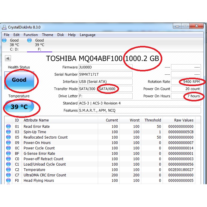 HDD Toshiba 1TB Sata3 5400 2.5" mới 100%, MQ04ABF100