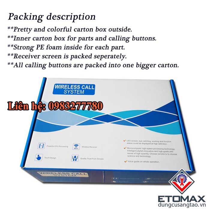 Thiết Bị Điện Gia Dụng > Mạch điện & Phụ tùng > Chuông cửa || Hệ thống chuông gọi bàn phục vụ không dây WIRELESS CALLCòn hàng