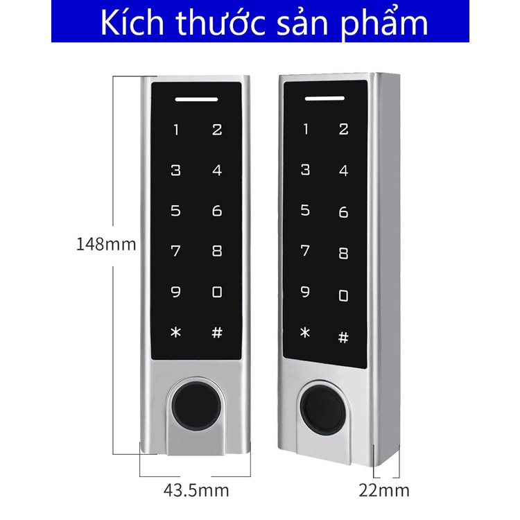 Bộ kiểm soát cổng ra vào thông minh có vân tay, mật khẩu bàn phím cảm ứng và thẻ từApp Tuya/ Smart Life