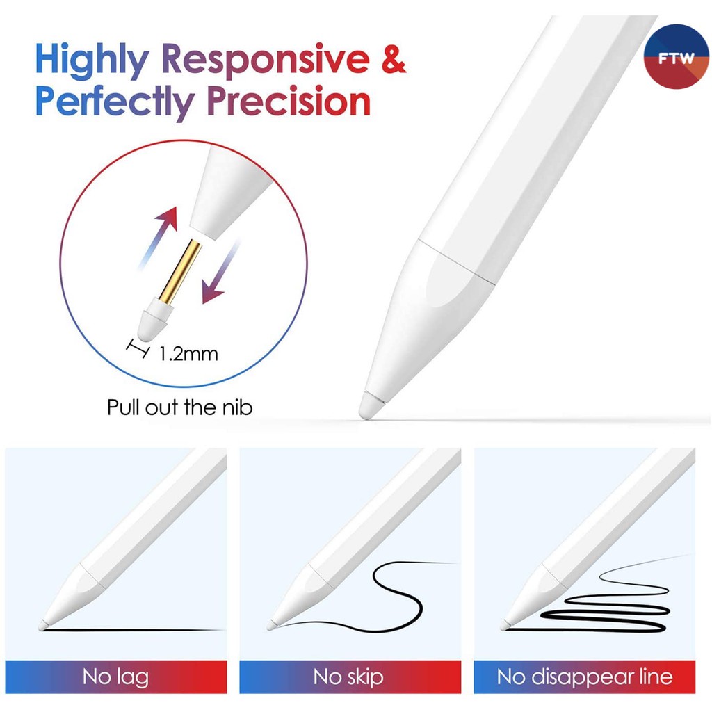 1.5mm Mịn Điểm: 6rd Tướng Bút Stylus Apple Pencil đi kèm với một cải tiến 1.5mm mịn đầu tạo nên một giống như giấy viết cảm giác đó cảm thấy chính xác hơn và nhạy hơn khác Stylus trên thị trường.