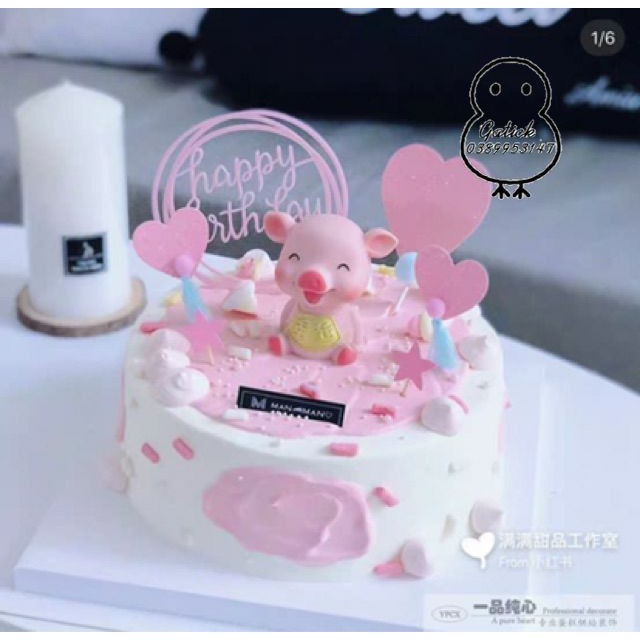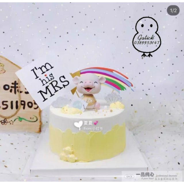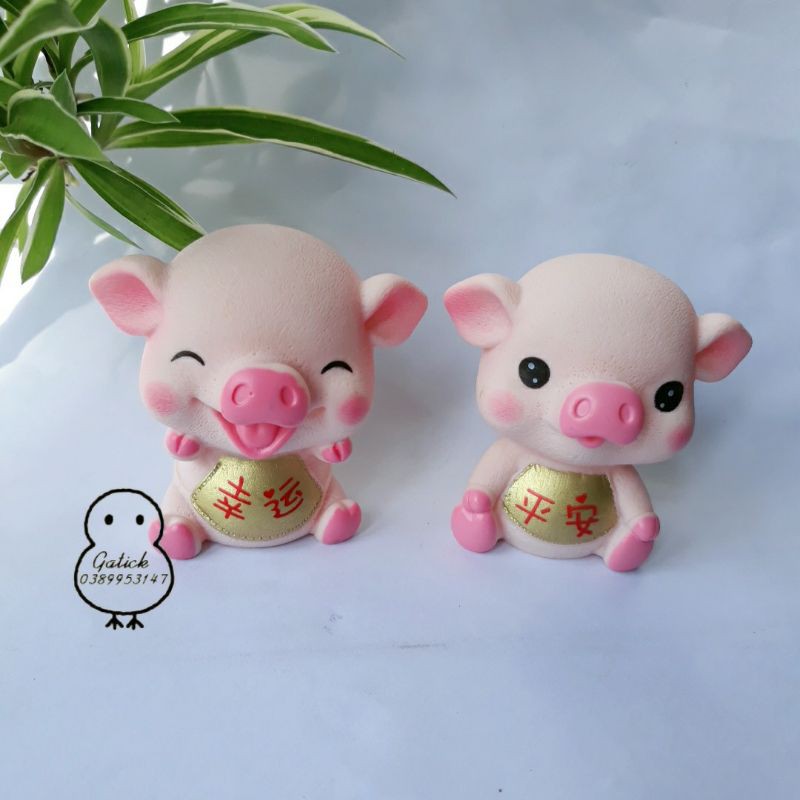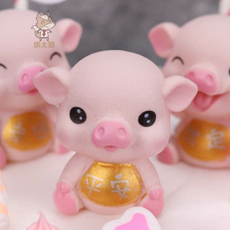 Giới thiệu Heo cười trang trí bánh kem, heo yếm vàng, chú lợn hồng phụ kiện trang trí sinh nhật, Topper cake