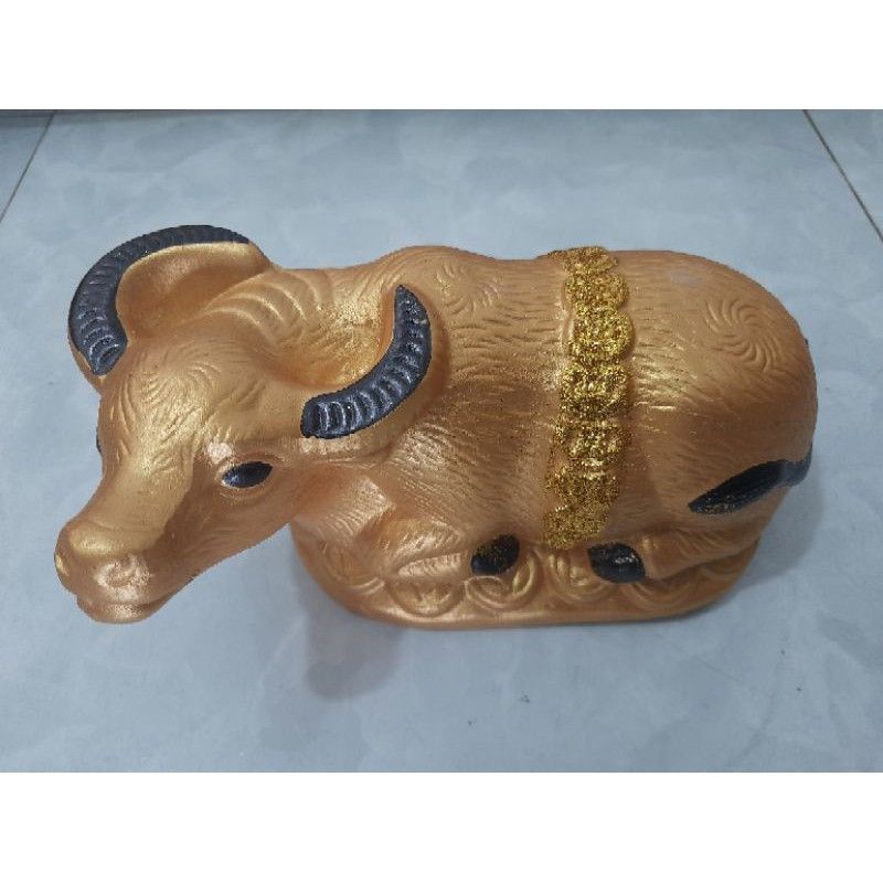 👉Với chất liệu đất nung, được các người thợ lành nghề tô vẽ 1 cách rất kỳ công sau đó phủ lớp sơn vàng bóng sang trọng tạo nên vẻ đẹp cho chú trâu. 👉Chú Trâu vàng đựng tiền tiết kiệm này sẽ an toàn hơn với các gia đình có con nhỏ, vừa đựng tiền tiết kiệm cho bé, vừa làm vật trang trí mang lại may mắn, tài lộc cho gia đình