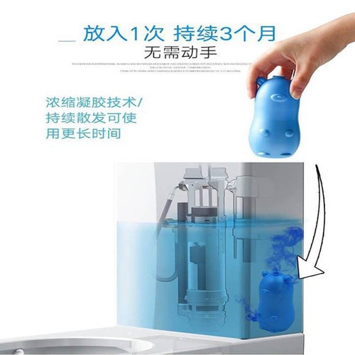 - Chỉ cần thả vào két nước, viên tẩy sẽ ngấm vào nước, mỗi lần giật nước viên tẩy sẽ giúp tẩy mùi hôi + làm sạch thành bồn cầu, sau đó viên tẩy lại ngấm vào nước theo quy trình xoay vòng.