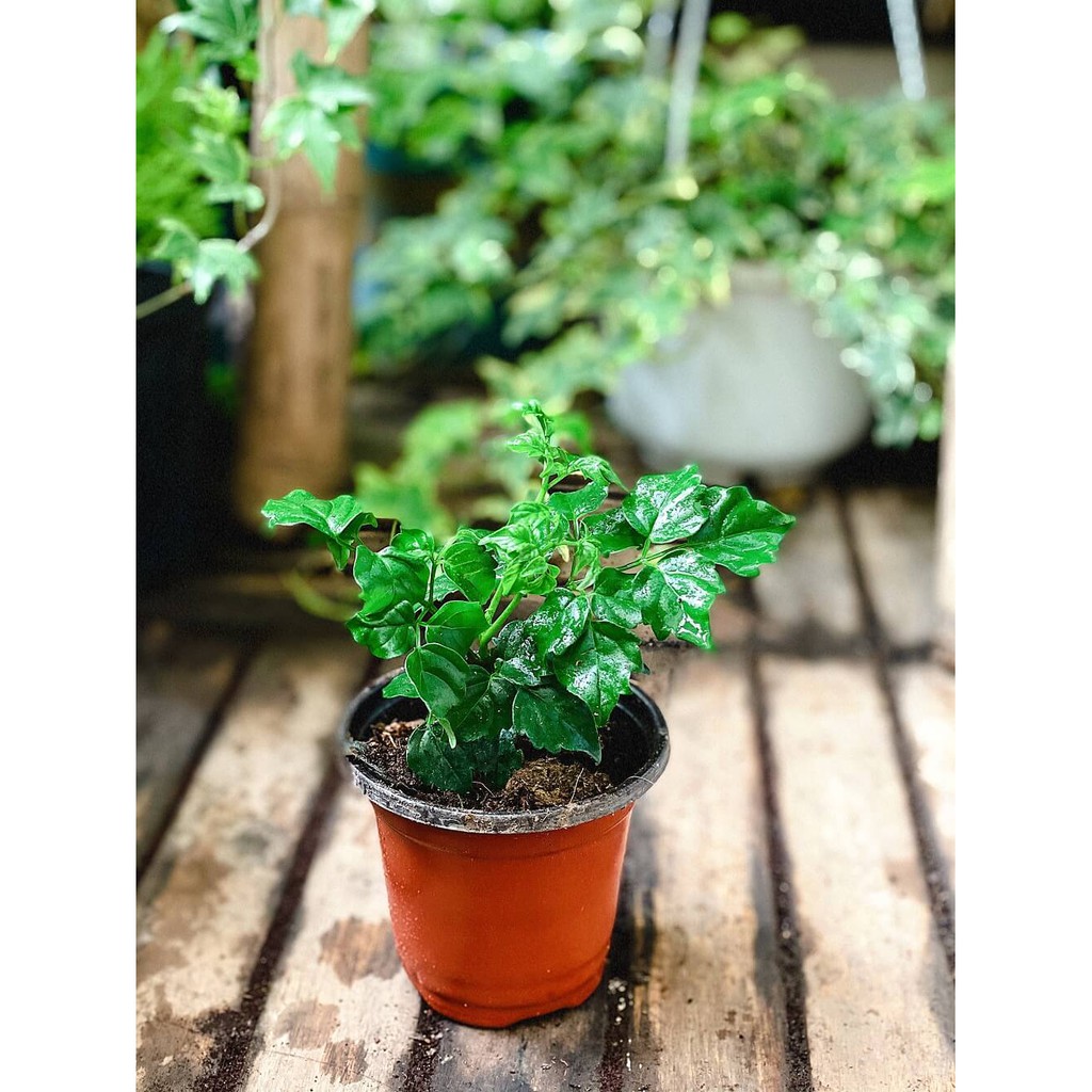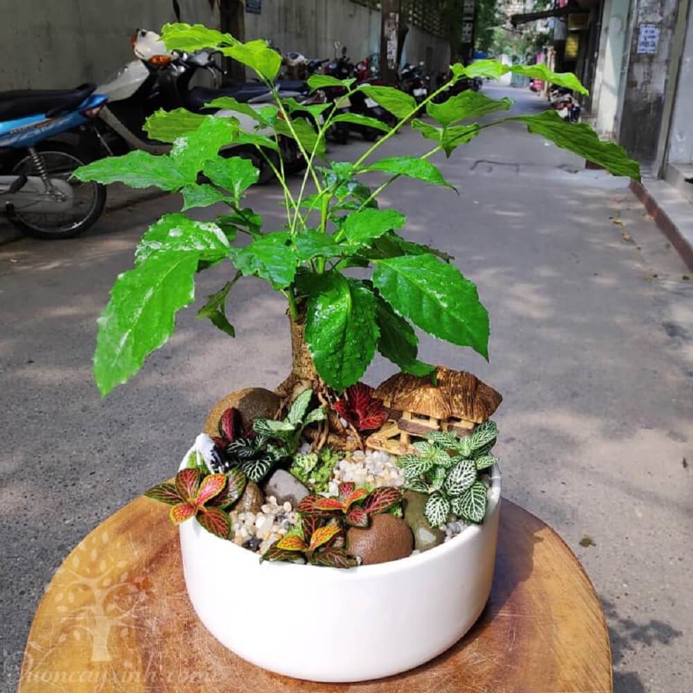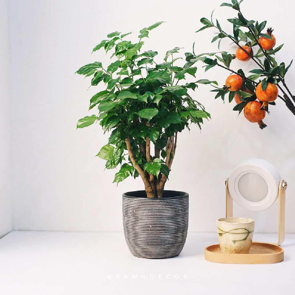 - Chậu cây gồm một thân cây nhiều cành lá cao tầm 10cm - 15cm.