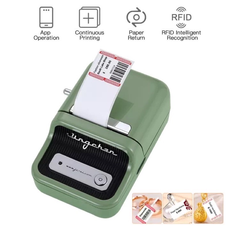 Hỗ trợ Không dây Kết nối Bluetooth 4.0, tương thích với điện thoại Android và IOS. Tải app NiimBot để sử dụng cho soạn thảo nội dung, in barcode, in giá lên nhãn dán...Chức năng Nhận dạng thông minh RFID: Được trang bị công nghệ nhận dạng tự động RFID, không cần phải tìm loại nhãn, nó sẽ tự động khớp với mẫu nhãn rất thuận tiện khi sử dụng.