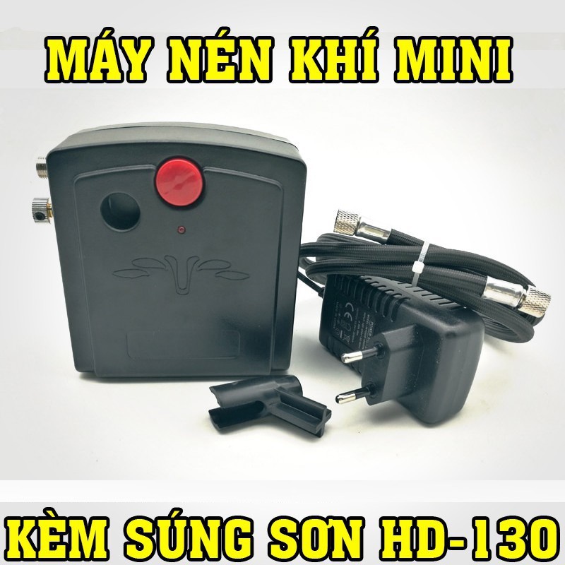 Giới thiệu [HHS] Máy nén khí mini kèm súng phun sơn Airbrush HD-130 - Máy phun sơn mini