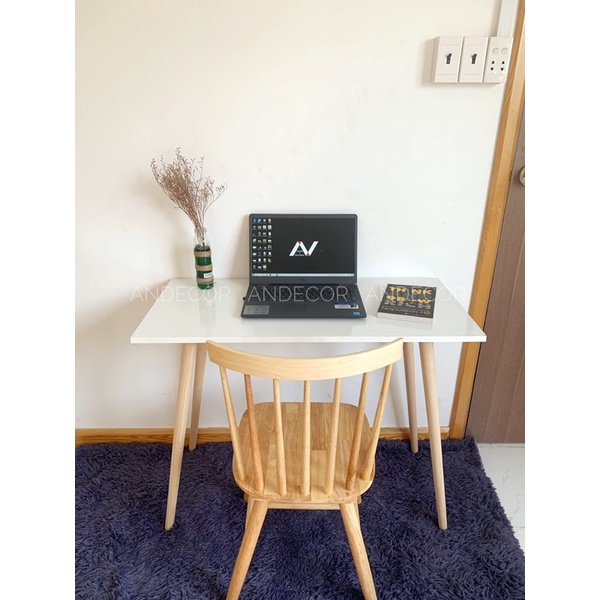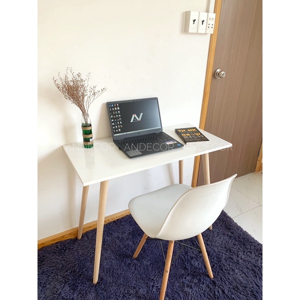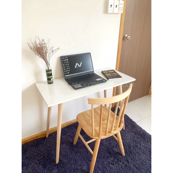 ( Hình ảnh thực tế ) Bàn làm việc học tập, chân gỗ cao su tự nhiên - Sản phẩm chính hãng An Decor