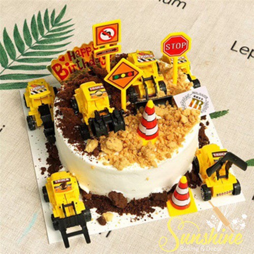 Giới thiệu Bộ hình cắm biển báo giao thông công trường đang thi công dùng trang trí bánh kem
