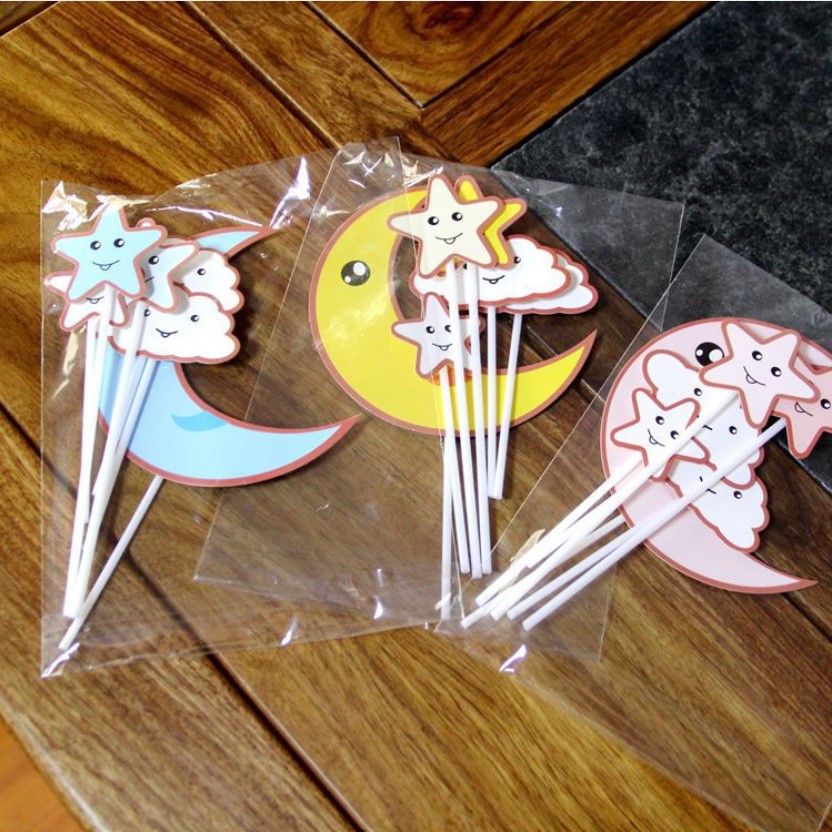 Bộ hình cắm giấy mây trăng sao trang trí bánh sinh nhật, topper cake