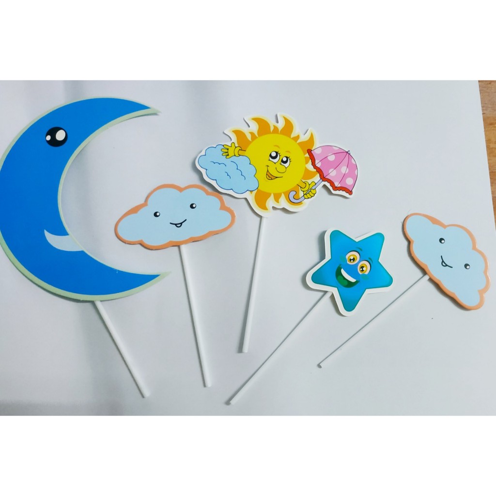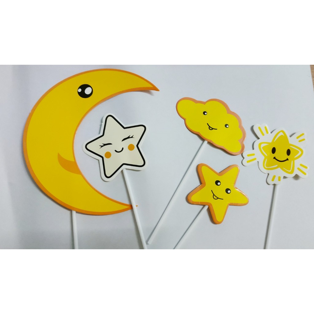 Bộ hình cắm giấy mây trăng sao trang trí bánh sinh nhật, topper cake- Dùng cắm trang trí lên bánh kem, bánh sinh nhật các loại...