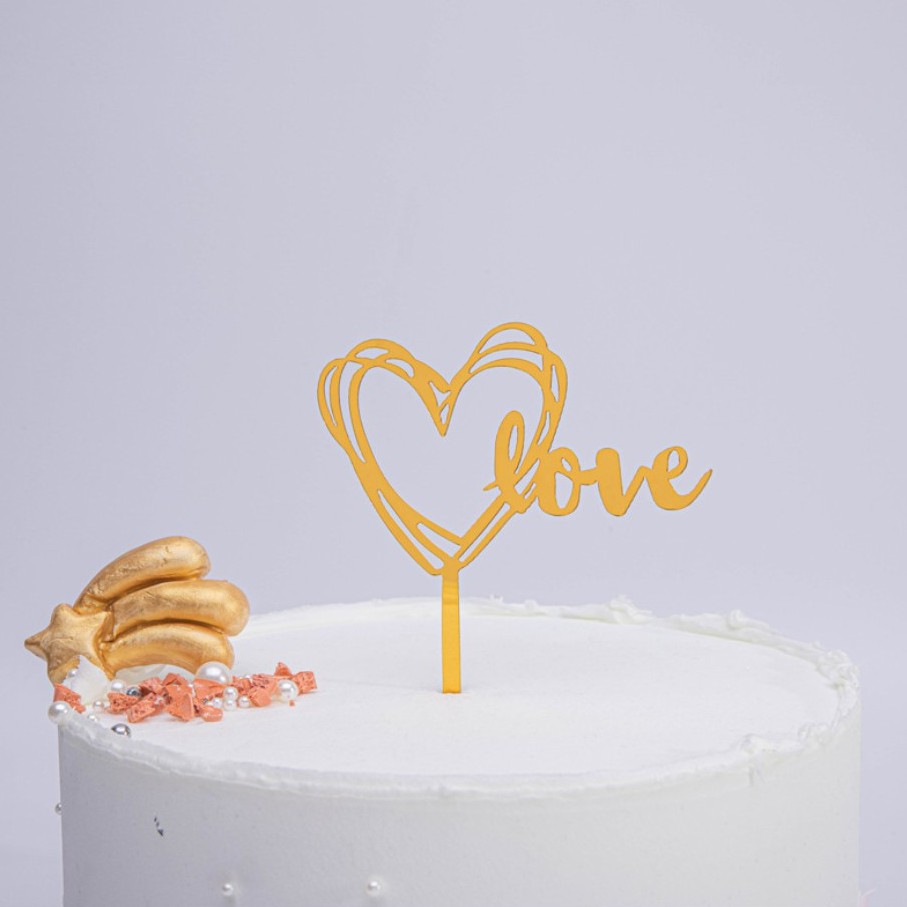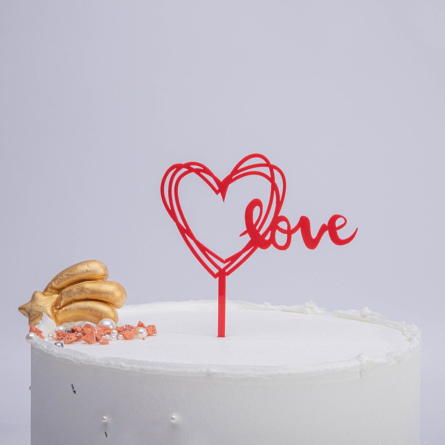 Hình cắm Meka chữ Love Tim trang trí bánh sinh nhật, mica trang trí