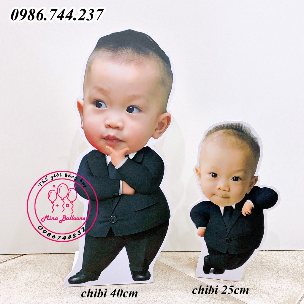 Hình Chibi bé trai cao 25cm, thiết kế hình Chibi trang trí tiệc sinh nhật