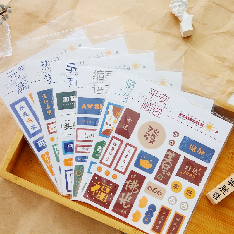 tấm hình dán chữ tiếng trung sắc màu đáng yêuKích thước: 150*150mm mỗi tấm