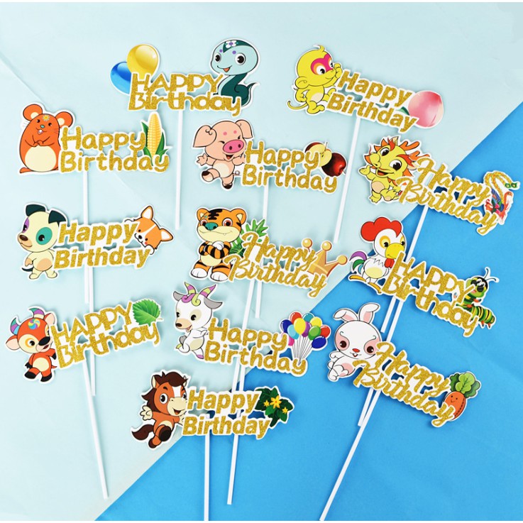 Hình giấy chủ đề 12 con giáp trang trí bánh sinh nhật, topper trang trí bánh sinh nhật- Dùng cắm trang trí lên bánh kem, bánh sinh nhật các loại