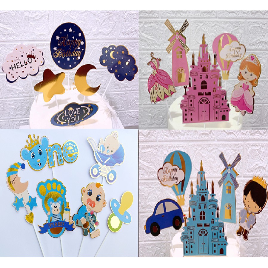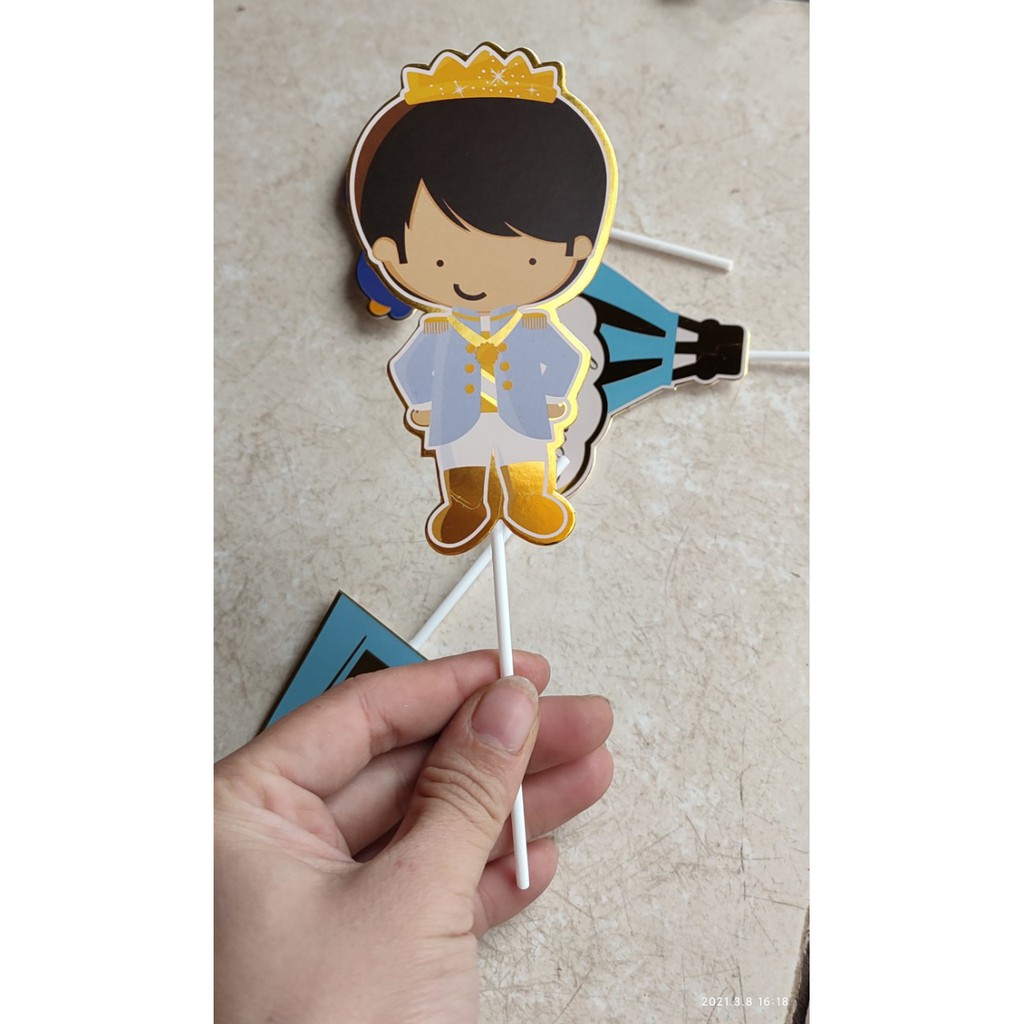 Bộ hình giấy hoàng tử công chúa lâu đài trang trí bánh (Ánh kim), set cắm giấy công chúa, thiên thần- Dùng cắm trang trí lên bánh kem, bánh sinh nhật các loại...