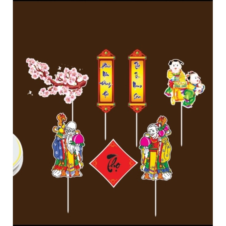 Bộ hình giấy Mừng thọ ông bà trang trí bánh sinh nhật- Dùng cắm trang trí lên bánh kem, bánh sinh nhật các loại, trang trí năm mới...