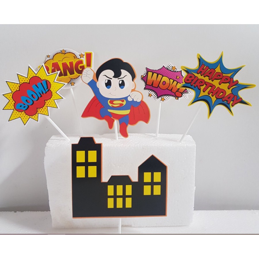 - Bộ sản phẩm gồm: Thẻ Happy birthday, Superman, nhà cao tầng, BAM!, POW!, BOOM!