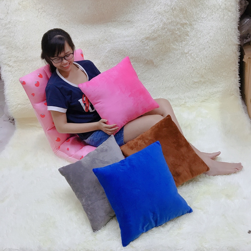 - Chất liệu: nệm mút, bông cao cấp và vỏ ngoài nhung lạnh Nhật Bản tạo cảm giác mềm mại sang trọng .