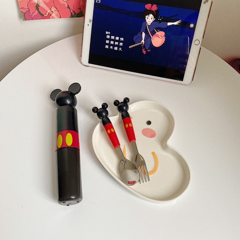 Giới thiệu (Hình thật/Có sẵn) Bộ muỗng nĩa và Ống đựng Mickey