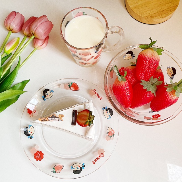 Peko Set 👧🏼👧🏻✨Nếu chán với đĩa và bát sứ thì đổi sang set thuỷ tinh in hình bé Peko nha ✨✨