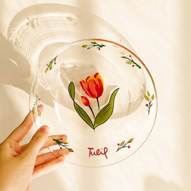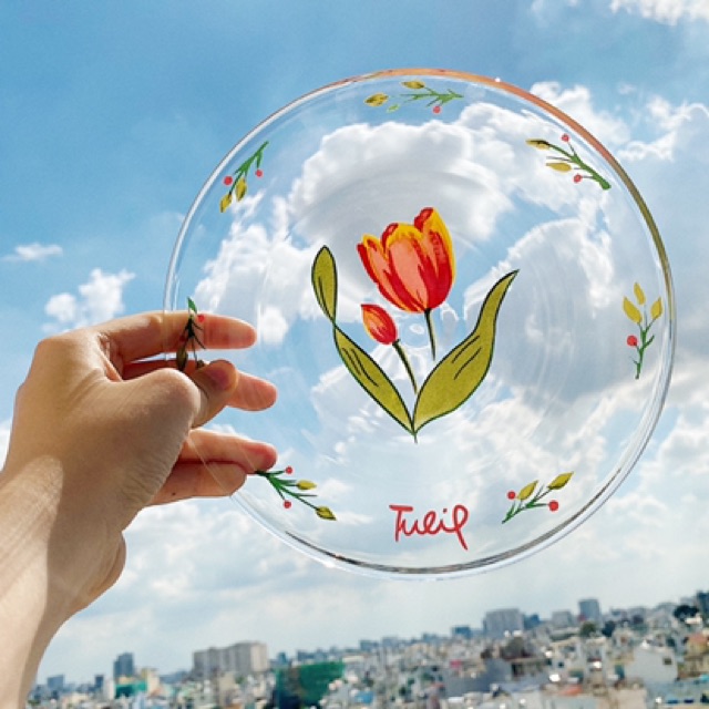 (Hình thật/Có sẵn) Đĩa thuỷ tinh hoa Tulip trong suốt