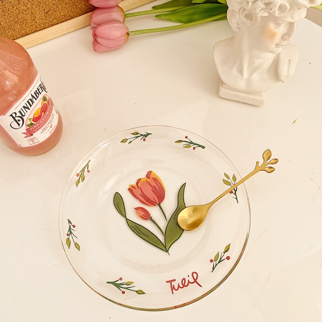 Nhà cửa & Đời sống > Bộ đồ bàn ăn > Dĩa || (Hình thật/Có sẵn) Đĩa thuỷ tinh hoa Tulip trong suốtCòn hàng
