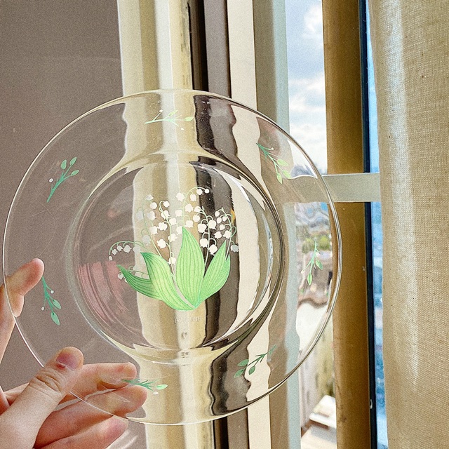 Nhà cửa & Đời sống > Bộ đồ bàn ăn > Dĩa || (Hình thật/Có sẵn) Đĩa thuỷ tinh Hoa ChuôngCòn hàng