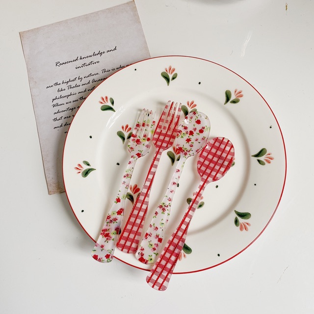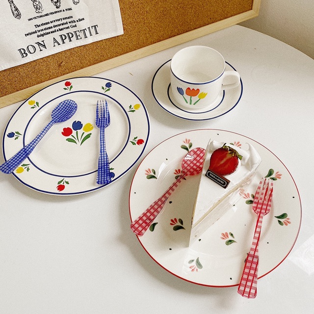 Nhà cửa & Đời sống > Bộ đồ bàn ăn > Dĩa || (Hình thật/Có sẵn) Đĩa Tulip viền đỏ Hàn QuốcCòn hàng