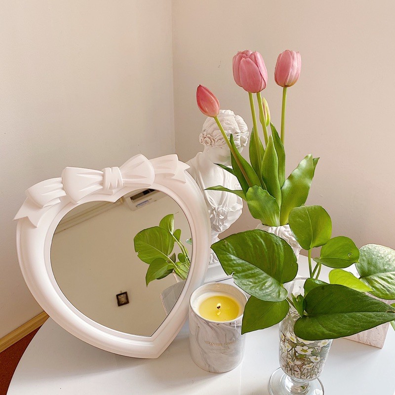 Nhà cửa & Đời sống > Trang trí nhà cửa > Gương || (Hình thật/Có sẵn) Gương trái tim có nơ (3 màu)Còn hàng