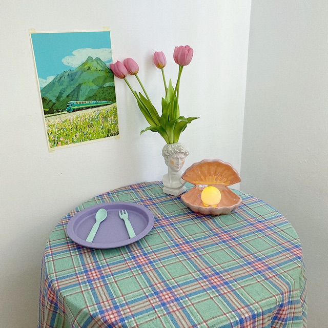 (Ảnh thật) Chiếc khăn trải bàn hoạ tiết caro thật sự là 1 item làm căn phòng trở nên đặc biệt. Căn phòng bạn đang theo chủ đề hay màu sắc gì ? Hãy chọn chiếc khăn trải phù hợp nhé 🙆🏼💖Có tận 6 màu: Xanh mint - Cam vàng - Tím - Xanh tím - Hồng cam - Vàng 🦄