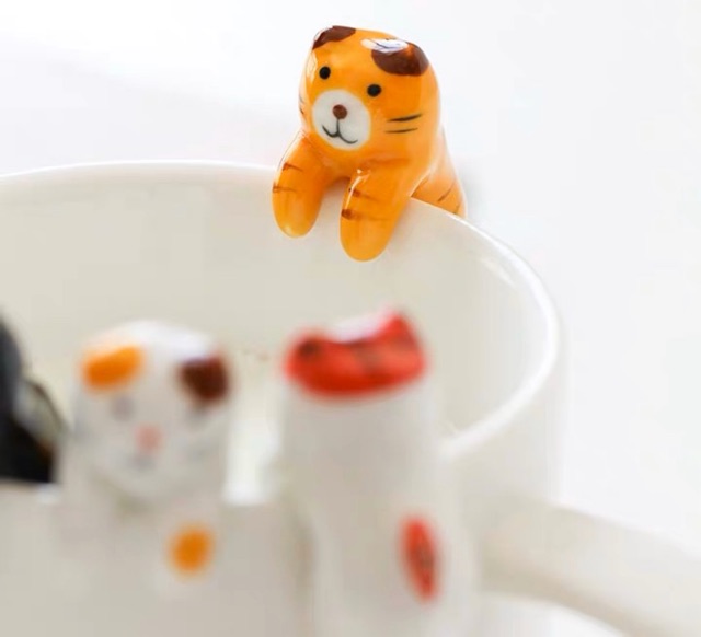 Ai thích uống nước mà muỗng không bị trôi thì có em boss cute nè5 em mèo: mèo tam thể, mèo mun, mèo vàng sọc, em mèo lông đỏ, mèo xám cam