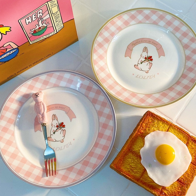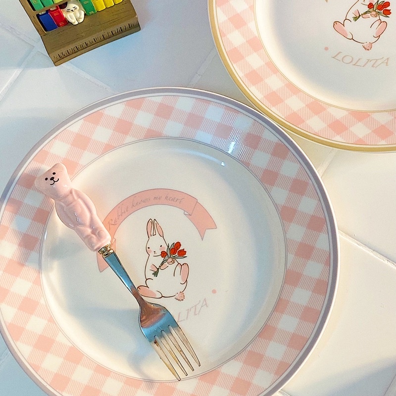 Nhà cửa & Đời sống > Bộ đồ bàn ăn > Dĩa || (Hình thật/Có sẵn) Tô - Đĩa sứ thỏ béo LolitaCòn hàng