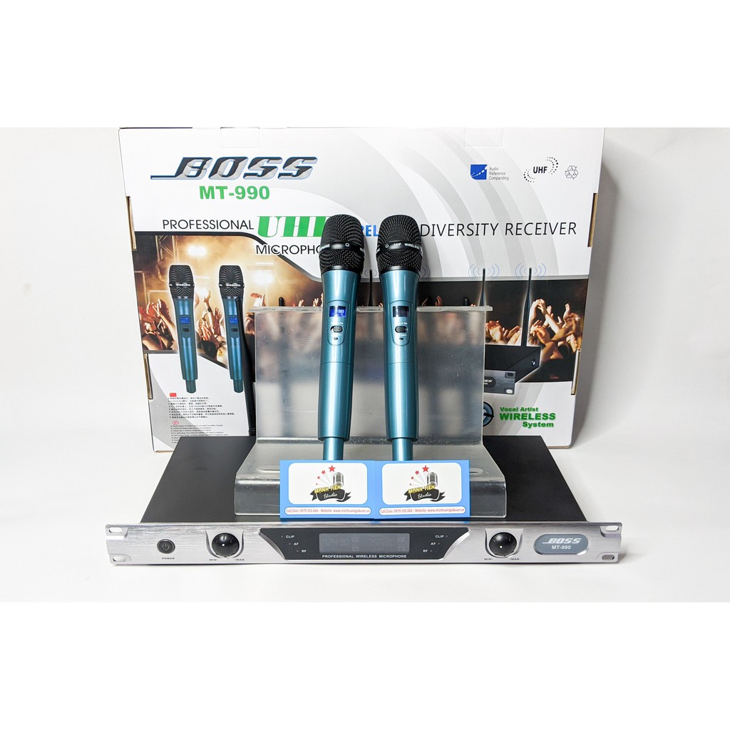 mua phải chiếc micro không dây được làm từ chất liệu kém bền, dễ bị rỉ sét và mau hư thì dù micro có tốt đến đâu bạn cũng phải bỏ tiền ra mua cái khác khi mới sử dụng không được bao lâu. Micro karaoke Boss MT-990 được làm từ chất liệu thép không rỉ nên có độ bền rất cao, sử dụng đúng cách thì thời gian cầm hát có thể lên đến 10 năm hoặc hơn nếu các dây mạch bên trong không bị hư hỏng.