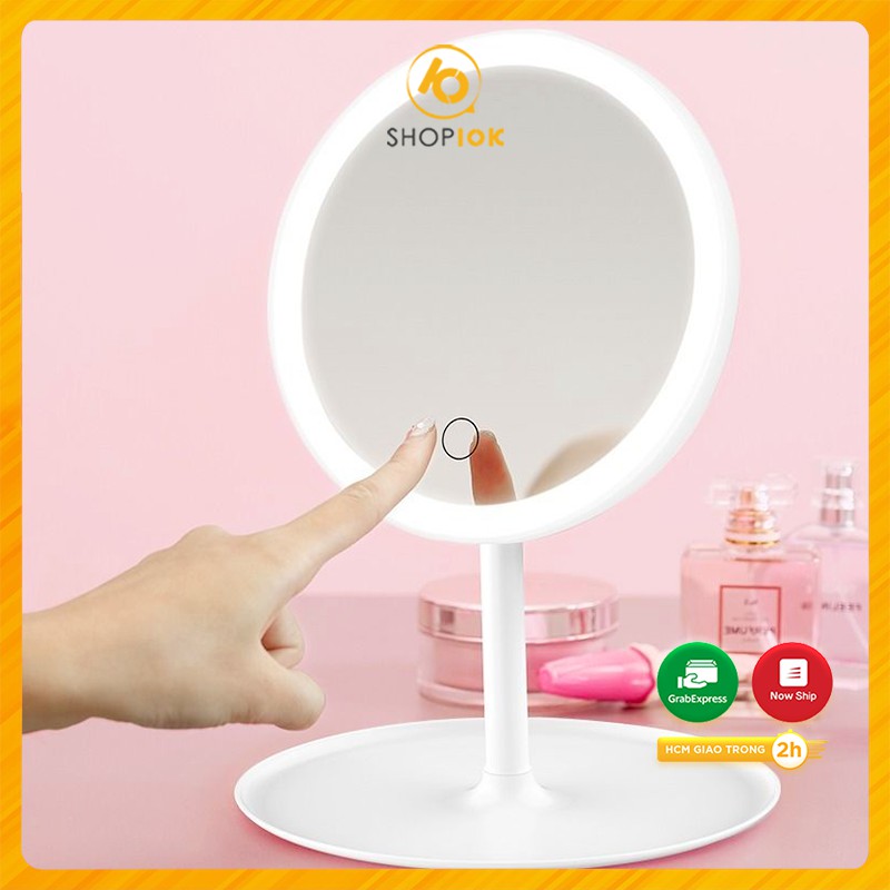 (Hình tròn) Gương trang điểm để bàn có đèn led, gương để bàn có đèn led cảm ứng với 3 chế độ sáng