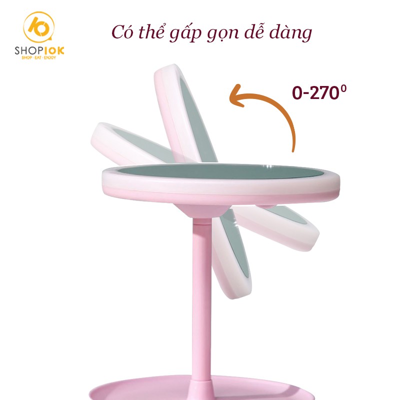 🌿 Gương để bàn đèn led dùng dây cáp hoặc pin tiểu nên rất tiện lợi cho các chị em trong việc mang theo làm đẹp bất cứ nơi nào.