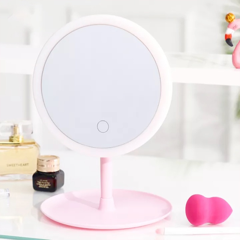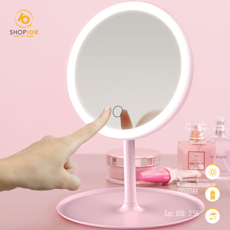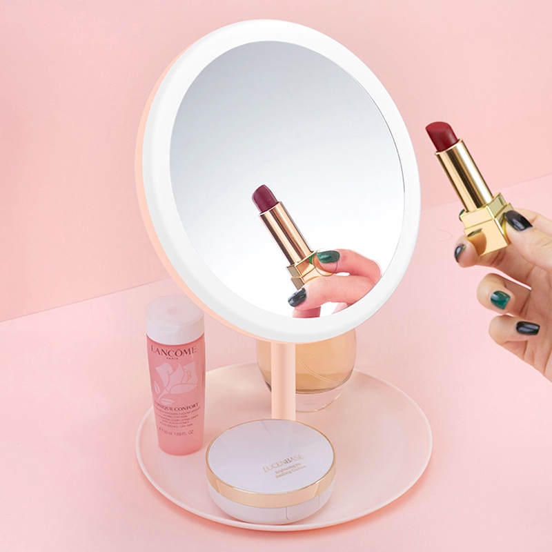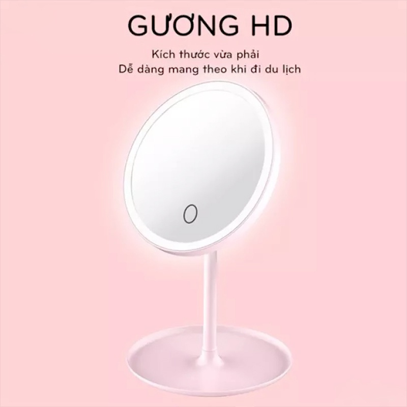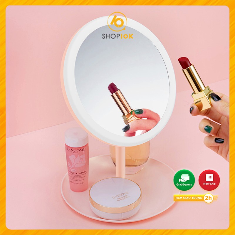 Gương trang điểm để bàn có đèn led, gương tròn để bàn có đèn led cảm ứng cao cấp⭐ Gương led trang điểm cảm ứng cao cấp được thiết kế dạng gương tròn để phục vụ cho mục đích trang điểm và tích hợp đèn led bo viền có thể sử dụng trong điều kiện trời tối.