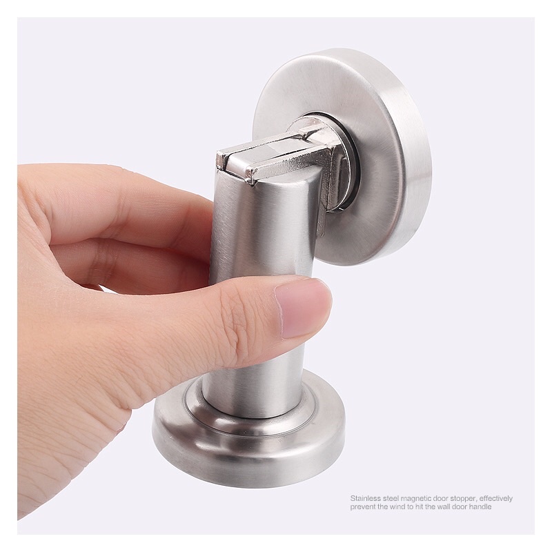 Hít cửa/ Chống đập được thiết kế thông minh gồm 1 đầu nam châm gắn lên cửa và một đầu nam châm gắn lên tường hoặc sàn nhà với độ hít mạnh, giữ cho cửa tránh va đập mạnh gây hỏng hóc hay kẹp tay, chân nguy hiểm.