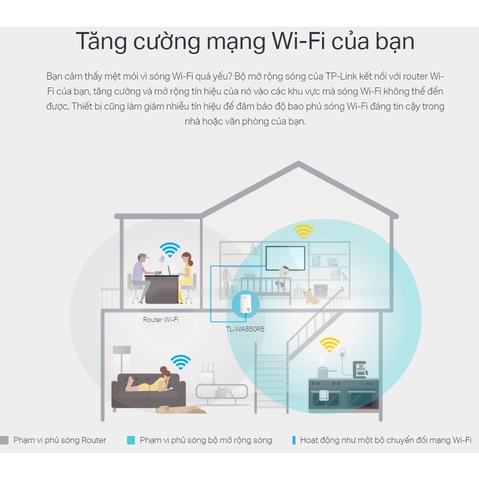 - Chế độ mở rộng sóng tăng cường tín hiệu Wi-Fi đến các điểm không thể hoặc khó đi dây trước đây một cách hoàn hảo.