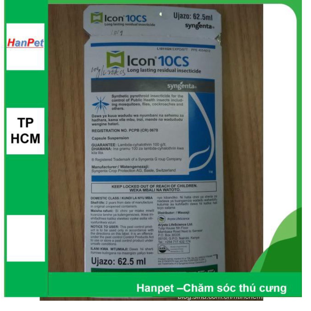 Giới thiệu HN-Thuốc trừ muỗi khách sạn ICON 10SC (gói 62,5ml) - Thuốc muỗi không mùi Syngenta Ltd (Vương quốc Bỉ) 437c-