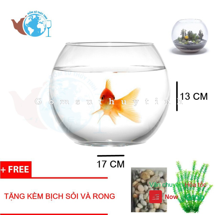 -- Hồ cá thủy tinh bầu là hồ thủy sinh chậu cây cảnh thủy tinh với đường kính 17cm chiều cao 13cm.