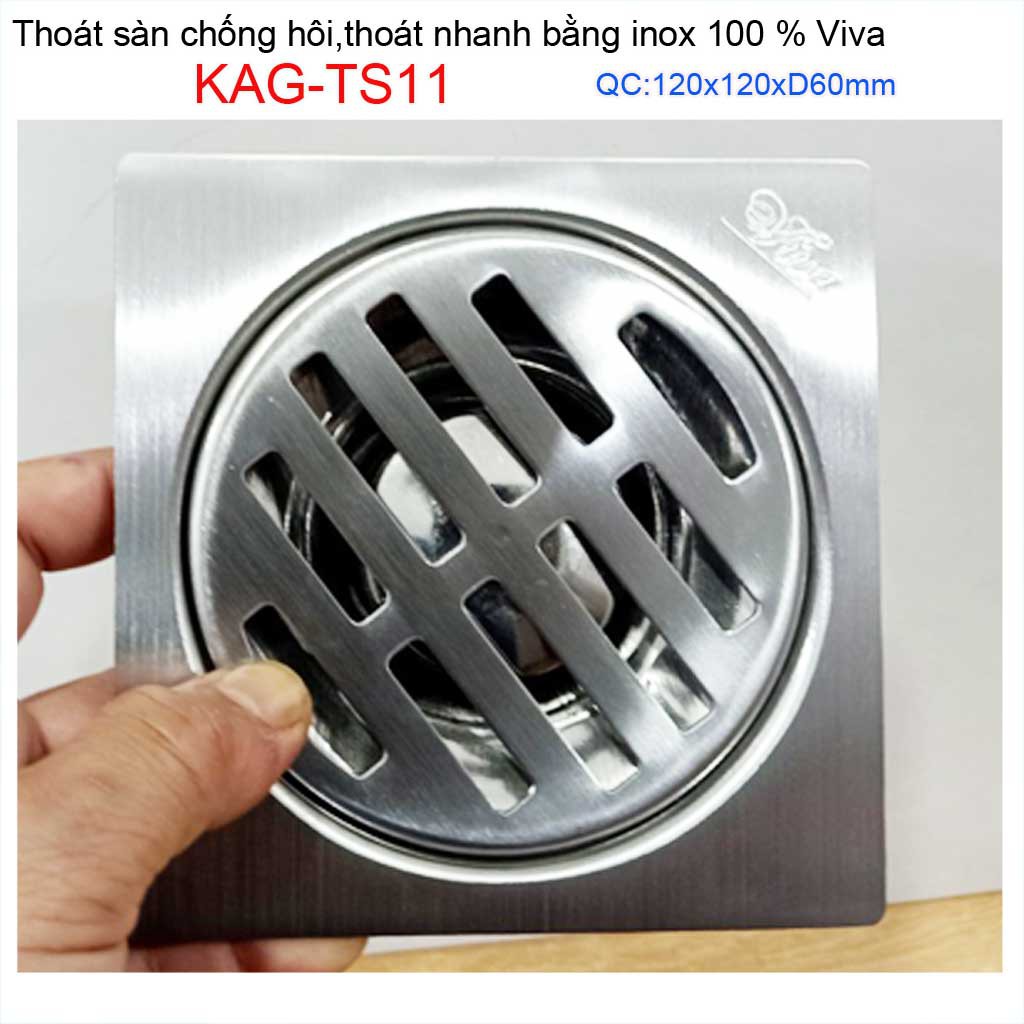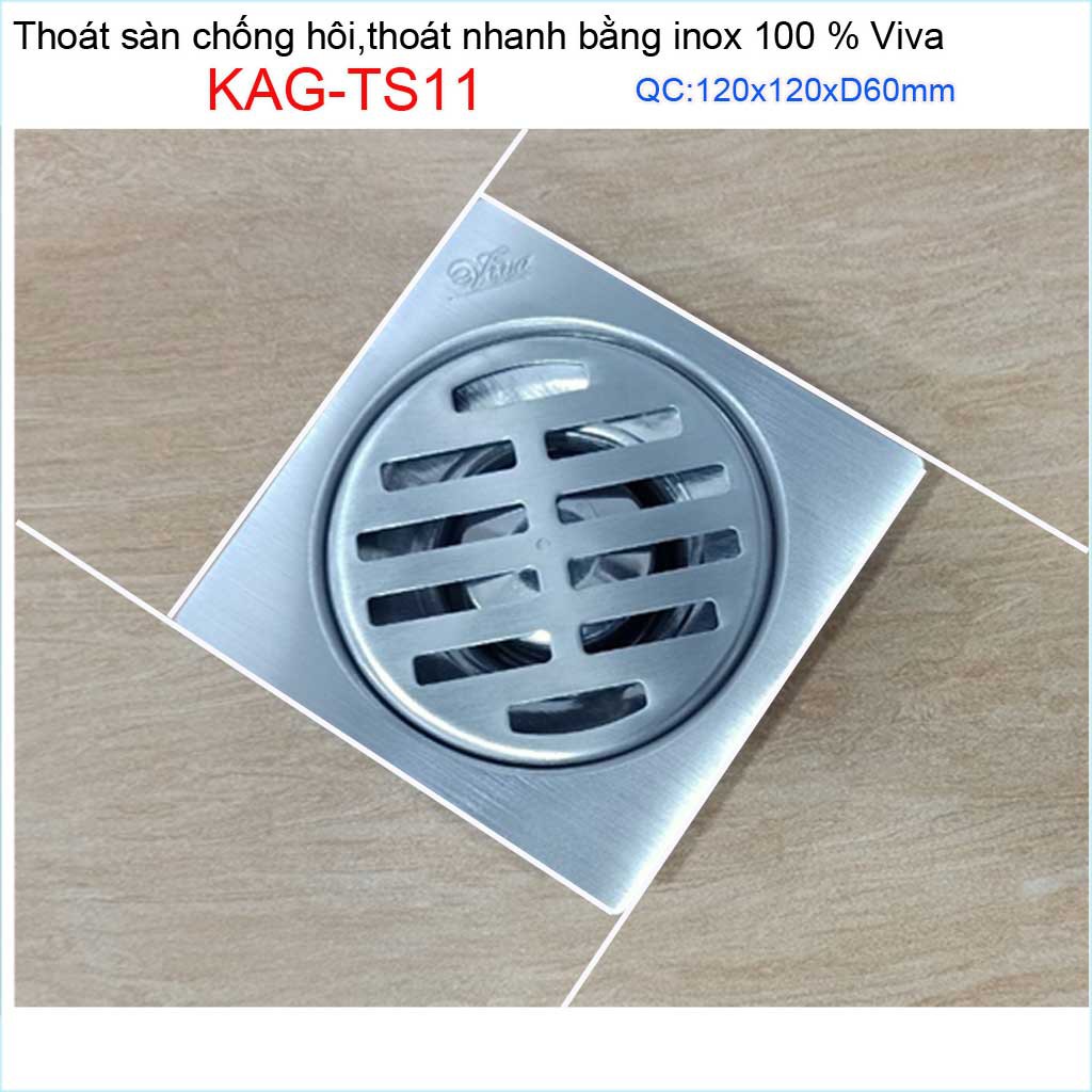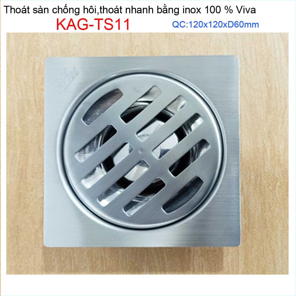 Giới thiệu Hố ga thoát sàn Viva ống 6cm Inox mờ, phễu thoát nước chống hôi D60 vuông 12x12cm KAG-TS11