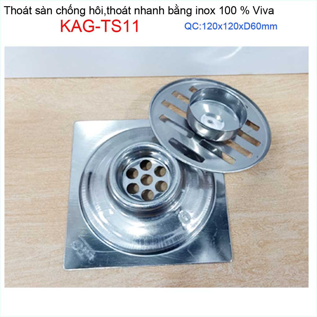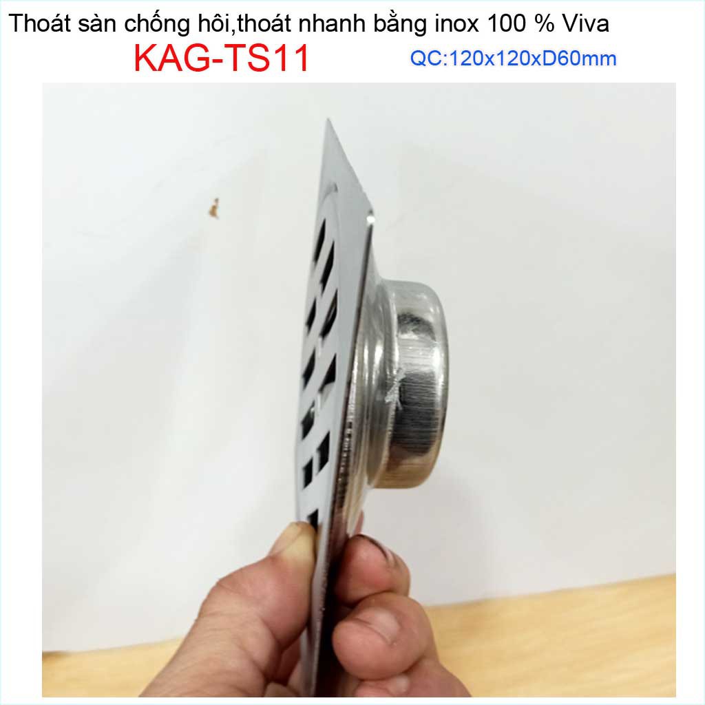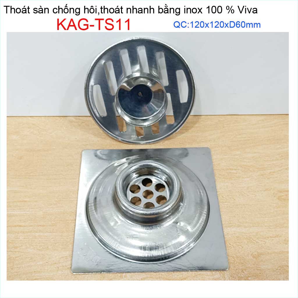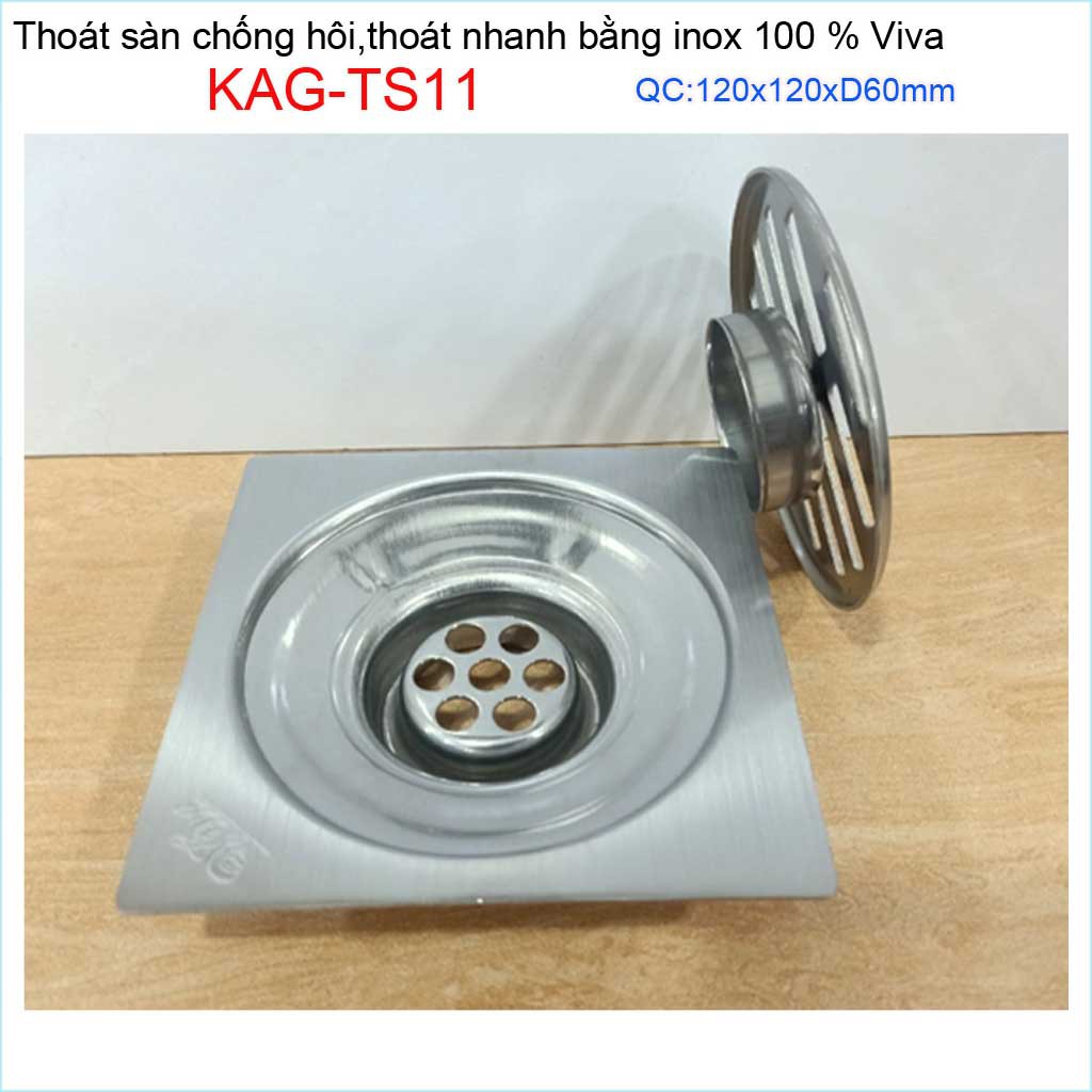 Giới thiệu Hố ga thoát sàn Viva ống 6cm Inox mờ, phễu thoát nước chống hôi D60 vuông 12x12cm KAG-TS11