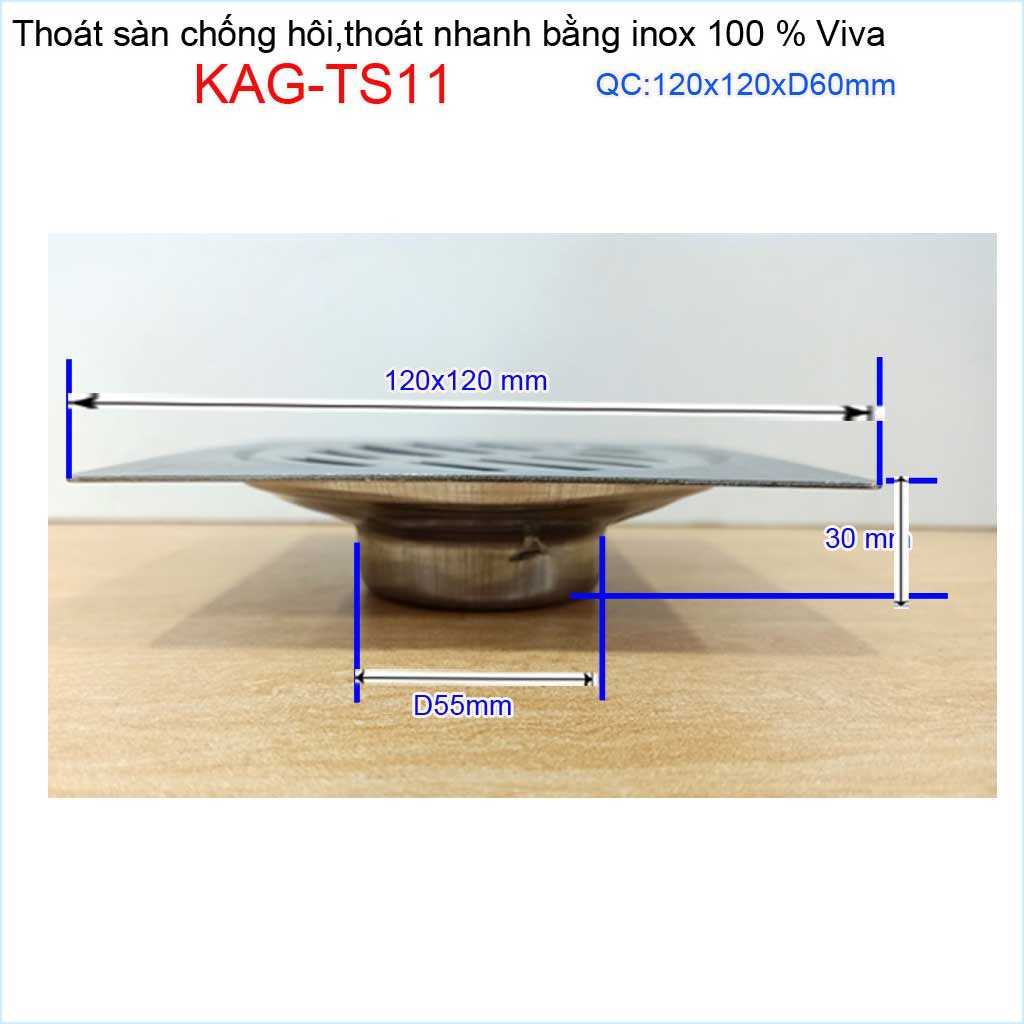 Hố ga thoát sàn Viva ống 6cm Inox mờ, phễu thoát nước chống hôi D60 vuông 12x12cm KAG-TS11 (12x12cm D60)Chất liệu: Inox mờ cao cấp, thương hiệu Viva đạt chuẩn Hàng VNCLC