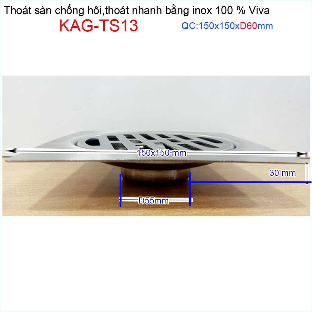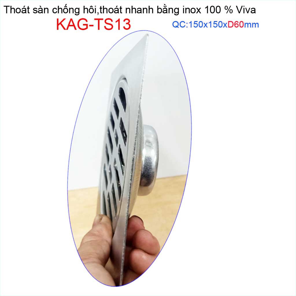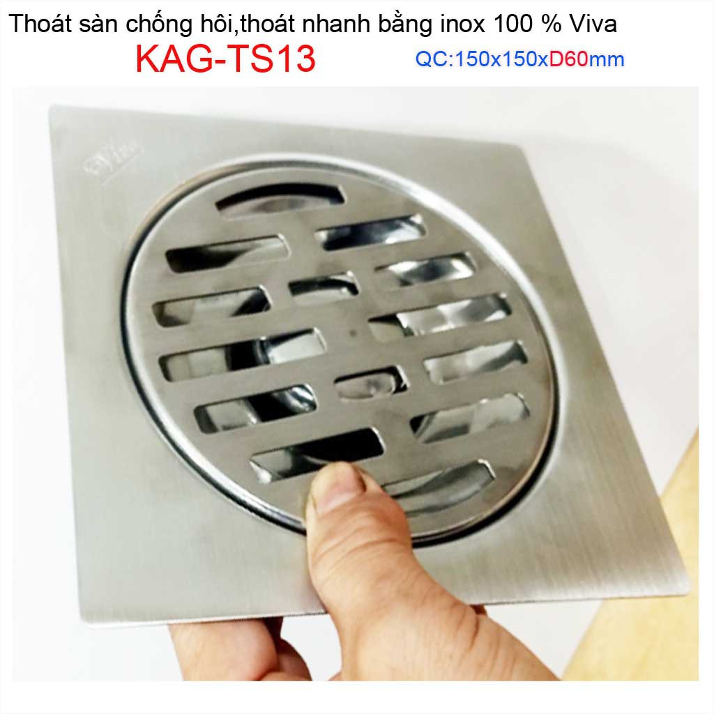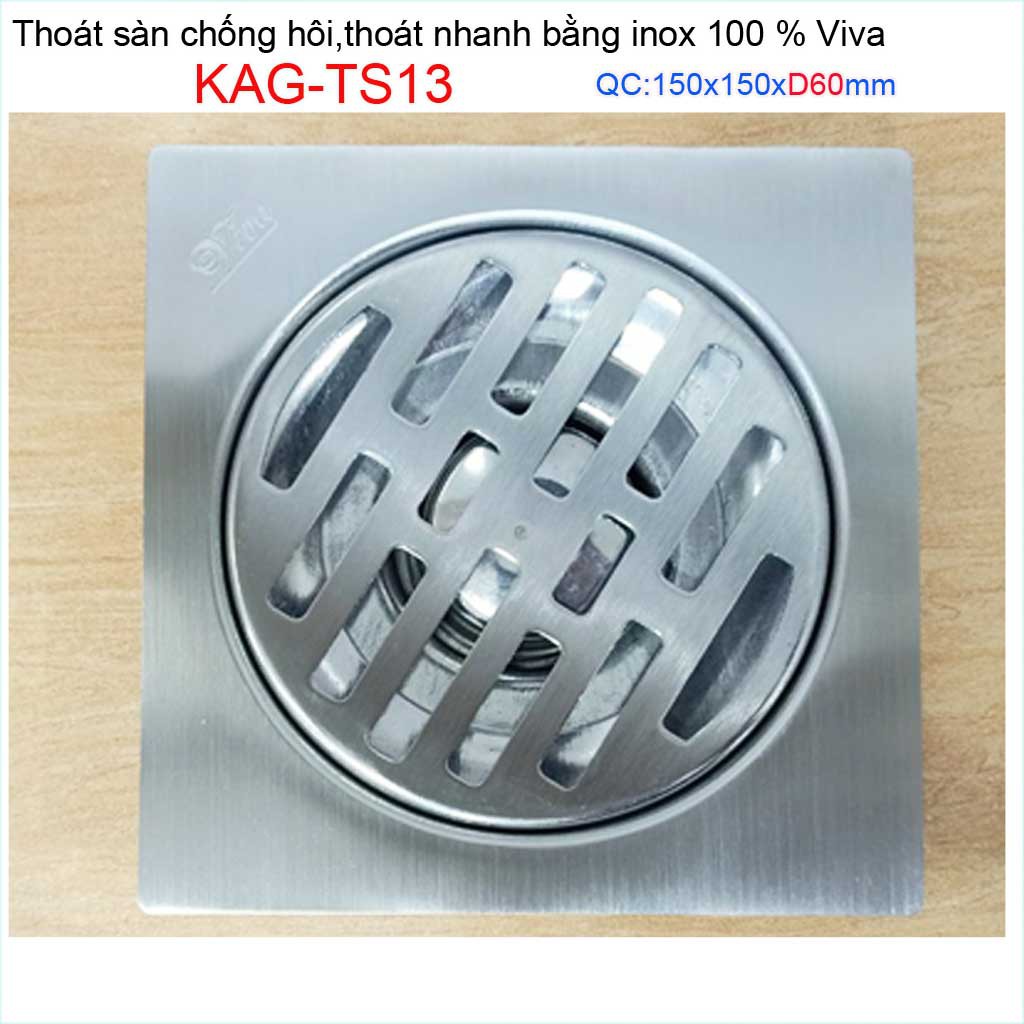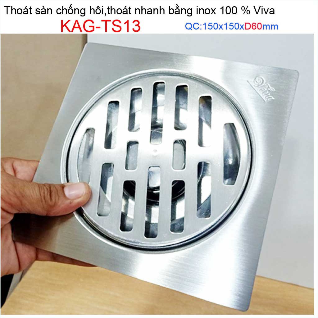 Hố ga thoát sàn Viva ống 6cm Inox mờ, phễu thoát nước chống hôi D60 vuông 15x15cm KAG-TS13 (15x15cm D60)Chất liệu: Inox mờ cao cấp, thương hiệu Viva đạt chuẩn Hàng VNCLC