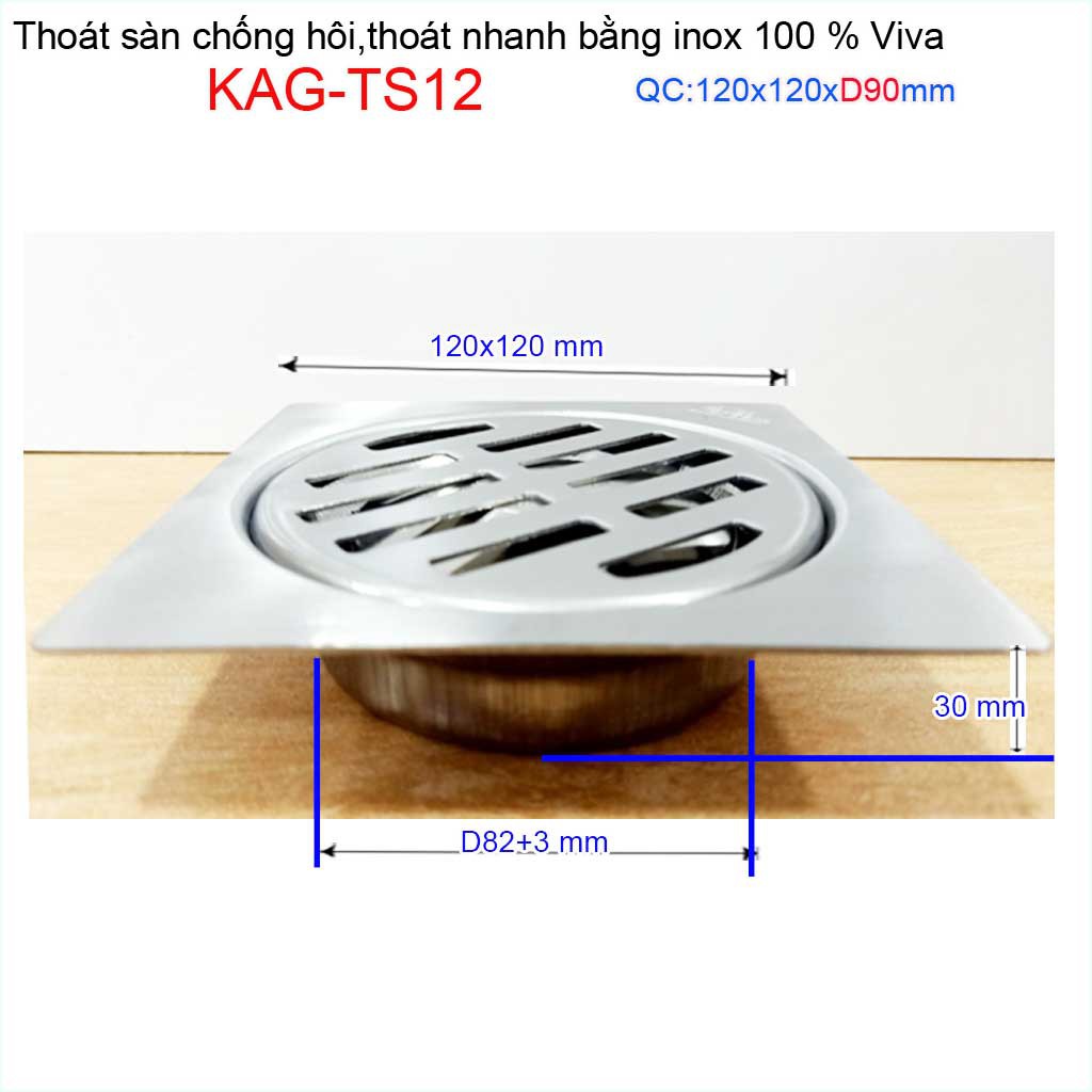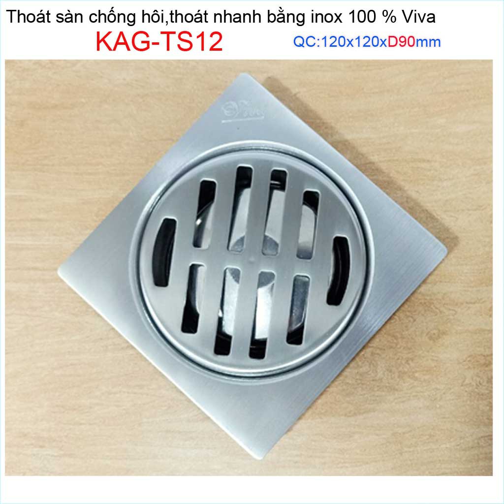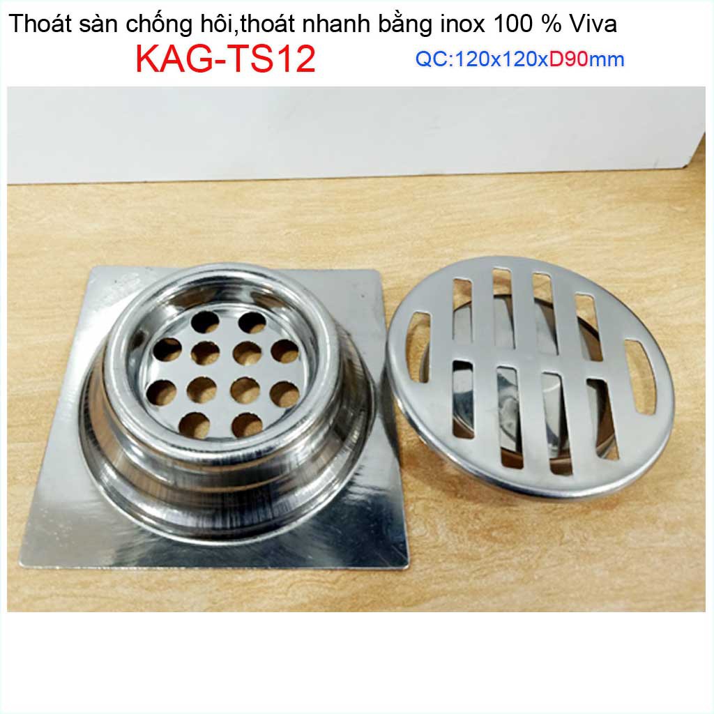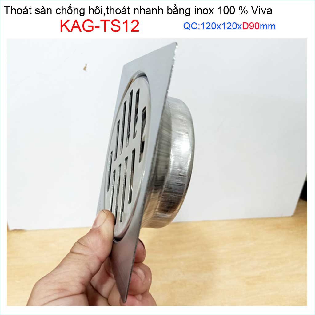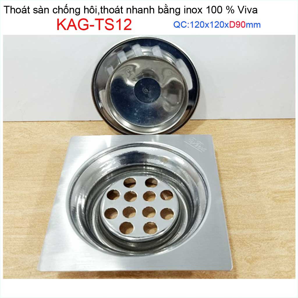 Giới thiệu Hố ga thoát sàn Viva ống D90 Inox mờ, phễu thoát nước chống hôi vuông 12x12cm KAG-TS12