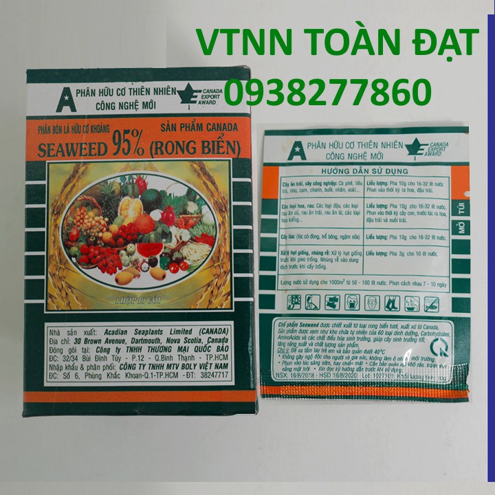 (Hộp 10 gói) Phân Bón Lá SEAWEED Rong Biển 95% - Phân Hữu Cơ Khoáng Vi Sinh